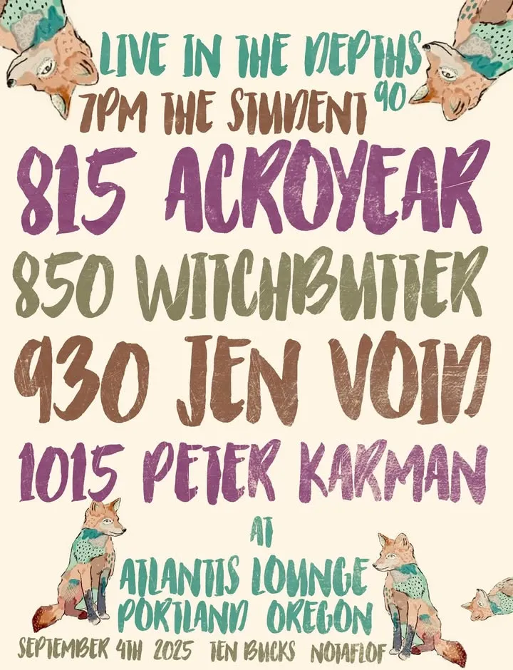 Confession: I didn’t go to every Live in the Depths this year, but I went to quite a few. And every one of them was pretty memorable. One of the reasons these shows are always consistently fun and rewarding, is because of the showrunner DHUG – that celestial body that becomes the center of the galaxy on the first Thursday of every month in Portland. He’s always enthusiastic, always welcoming and always fucking yelling in way that could shatter glass … if love weren’t cushioning the blast.