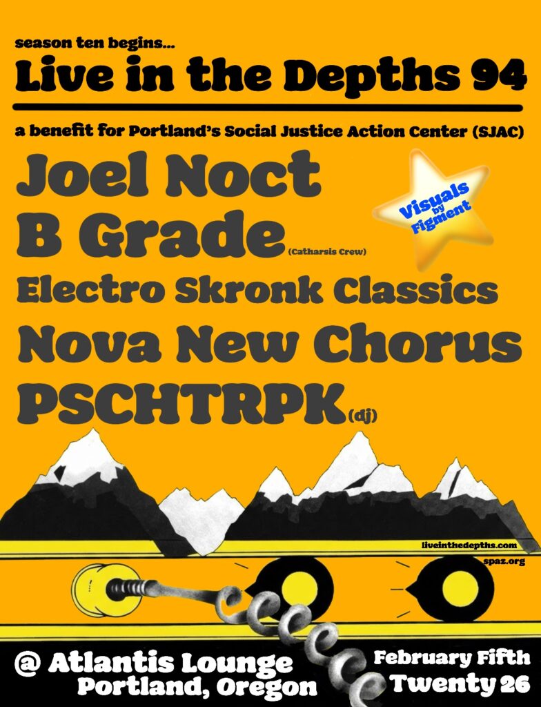 The show I saw on Saturday night was the Equalizer show presented by Heterodox Records at No Fun Bar on Hawthorne in Portland. No Fun Bar is a small venue. Cramped? Sure. Half the time it feels like you’re waiting to be crammed into a human shipping container. But pack that place with a buzzing, half-feral electronic crowd, and suddenly the claustrophobia flips into something intense and deeply satisfying – like being buried alive with a really good sound system.