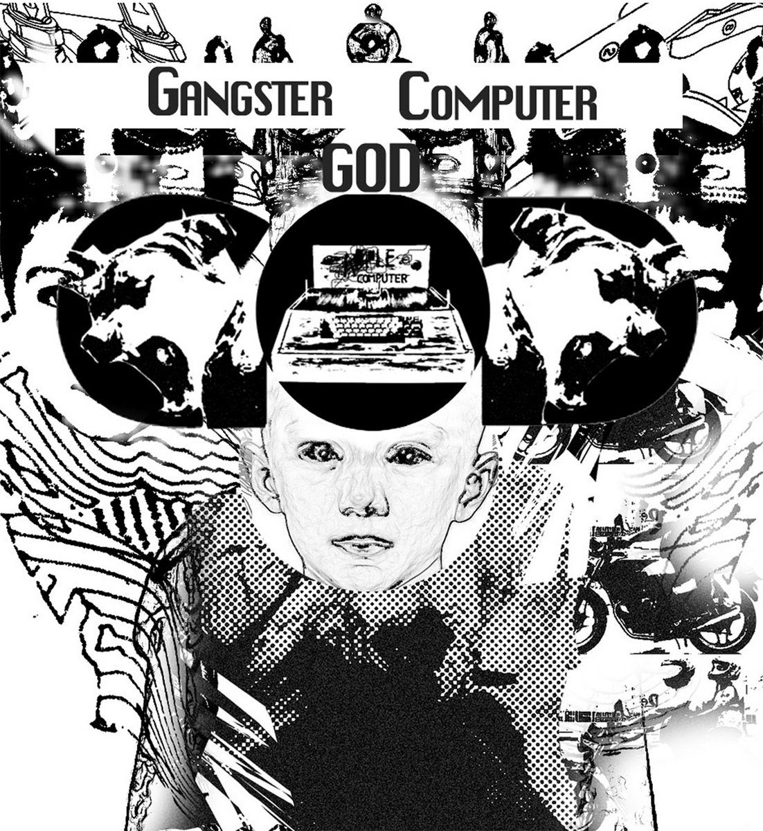 Gangster Computer God is an appropriate name for Kevin Stevenson Fiske. I don’t know Kevin in any deep, confessional sense, but everyone who does know him speaks with this strange, incandescent enthusiasm. Through that chorus of praise, I feel like I know him pretty well. He’s the ever-present force along with Dhug at Live in the Depths. He’s almost always operating the sound at LITD and if he isn’t, he’s probably performing. This self-titled album is such a wonderful treat. I know my review won’t do justice to the production that when into this record (it’s is dense, deliberate, and frighteningly alive) but like all of my reviews I thought I’d tell you how it makes me feel. And if you want a shortcut into the headspace where this album was forged, you don’t need a decoder ring – you need Kevin’s book, The Galactian Cyclops Crystal. It’s the clearest window into the circuitry of the man behind the music. Just read this passage below …